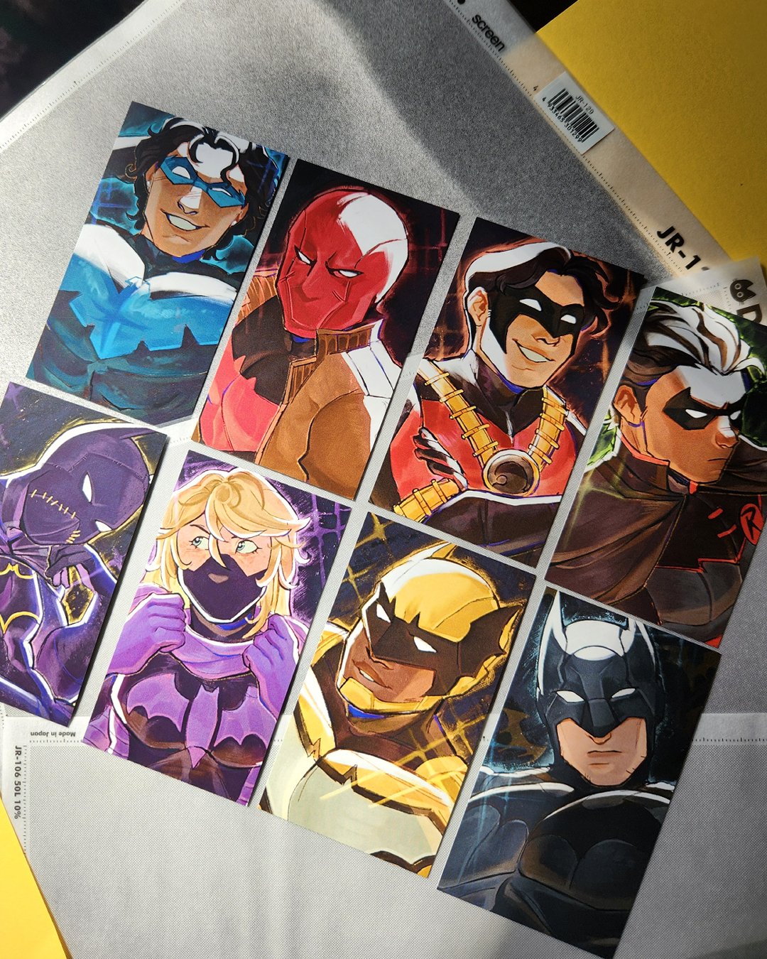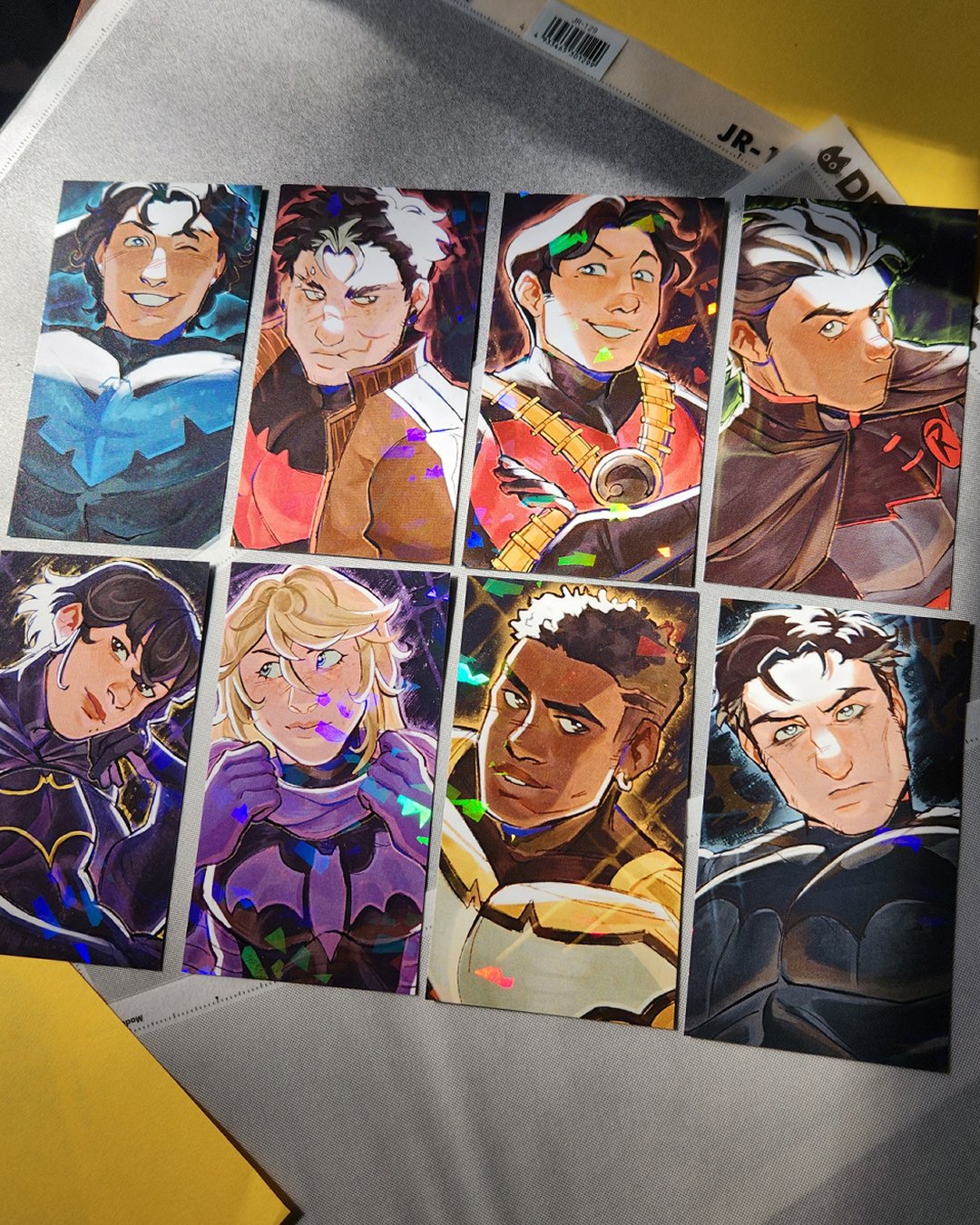 Pick out your fave batfam member or collect the whole brood! These photocards are 3.5 x 2 inches (88.9 x 50.8 mm) printed on light cardstock with a holographic front layer. Cards will come with a soft penny sleeve.