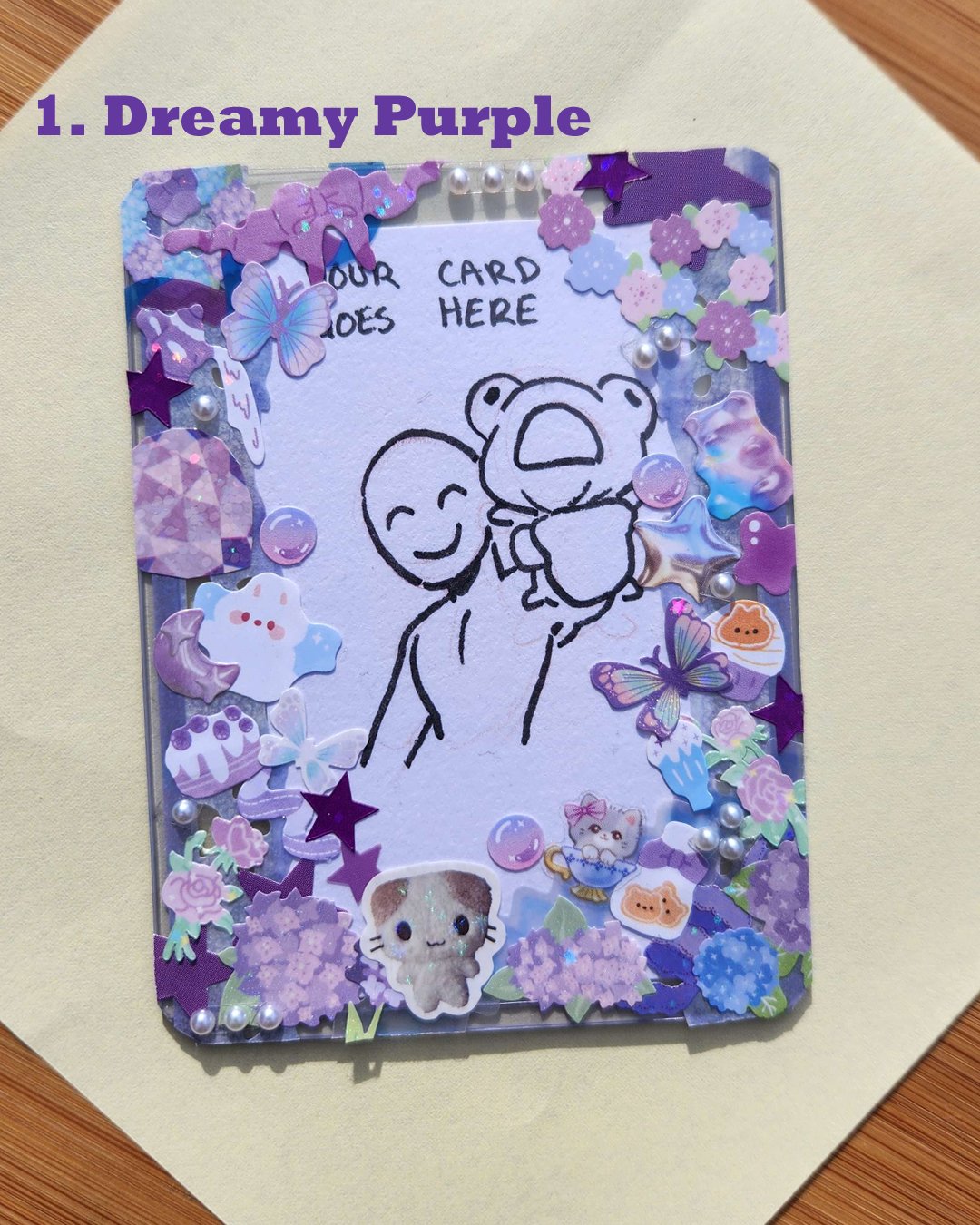 These feature a single side decorated hardcase cardsleeve and are one of a kind! I never make the same card twice, and when they're gone they're gone.